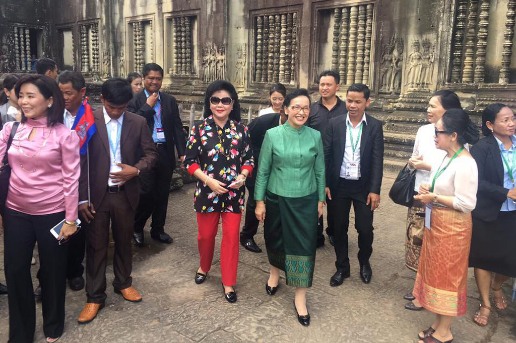 ខេត្តសៀមរាប ៖ សម្តេចកិត្តិព្រឹទ្ធបណ្ឌិត ប៊ុន រ៉ានី ហ៊ុនសែន ស្ត្រីទី១កម្ពុជា បានដឹកនាំ លោកស្រីភរិយានាយករដ្ឋមន្ត្រីឡាវ និងគណៈប្រតិភូឡាវ ទស្សនាប្រាសាទអង្គរវត្ត ដ៏ល្បីល្បាញ របស់កម្ពុជា នៅព្រឹកថ្ងៃទី២៣ ខែវិច្ឆិកា ឆ្នាំ ២០១៦ ខណៈដែលលោកស្រីភរិយានាយករដ្ឋមន្ត្រីឡាវ បានអញ្ជើញមកដល់ក្រុងសៀមរាប ខេត្តសៀមរាប កាលពីថ្ងៃទី២២ ខែវិច្ឆិកា ឆ្នាំ ២០១៦ អមដំណើរលោកថងលុន ស៊ីស៊ូលីត នាយករដ្ឋមន្ត្រីនៃសាធារណរដ្ឋប្រជាធិបតេយ្យ ប្រជាមានិតឡាវ មកចូលរួមកិច្ចប្រជុំកំពូល កម្ពុជា-ឡាវ-វៀតណាម លើកទី៩ ស្តីពីការ អភិវឌ្ឍតំបន់ត្រីកោណនៃប្រទេសទាំងបី ពីថ្ងៃ ទី២២-២៣ ខែវិច្ឆិកា ឆ្នាំ២០១៦។