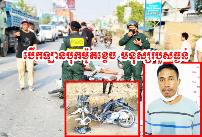 បើកឡានបុកម៉ូតូខ្ទេច មនុស្សរបួសធ្ងន់