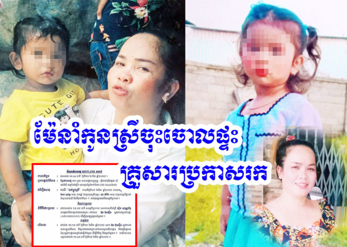 ខេត្តកំពង់ស្ពឺ ៖ ស្ត្រីម្នាក់ បាននាំកូនស្រីតូចរបស់ខ្លួនដែលទើបនឹងមានអាយុ ២ខួប ចាកចេញពីផ្ទះបាត់ ដោយមិនដឹងថាទៅណា ទើបធ្វើឱ្យក្រុមគ្រួសារមានការព្រួយបារម្ភ តាមស្វែងរកអស់រយៈពេលកន្លះខែទៅហើយ នៅតែមិនឃើញ ក៏រាយការណ៍សុំអន្តរាគមន៍ពីសមត្ថកិច្ច។
