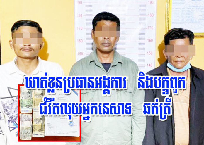 លោកអធិការ បន្តទៀតថា លុះដល់ថ្ងៃទី២៦ ខែកុម្ភៈ ឆ្នាំ២០២២ វេលាម៉ោង ៣និង៣០នាទីរសៀល ឈ្មោះយ៉ិន យិន ភេទប្រុស អាយុ៣៨ឆ្នាំ មុខរបរកសិករ និងឈ្មោះវ៉ាន់ សុធារ៉ា ភេទប្រុស អាយុ៣៥ឆ្នាំ មុខរបរកសិករ អ្នកទាំងពីរមានលំនៅ ភូមិអង្គរជ័យ ឃុំបន្ទាយដែក ស្រុកកៀនស្វាយ បានត្រឡប់មកពីរកត្រីវិញ (ឆក់ត្រី) នៅបឹងកណ្តាល ។ លុះពេលមកផ្លូវកែង ចង់ខ្សាច់ ស្រាប់តែឈ្មោះធី អាយុប្រហែល៥២ឆ្នាំ ឈ្មោះទី អាយុប្រហែល២៨ឆ្នាំ និងបក្ខពួក ៦នាក់ទៀត មិនស្គាល់ឈ្មោះ បាននាំគ្នាចាប់ឈ្មោះយ៉ិន យិន ភេទប្រុស និងឈ្មោះវ៉ាន់ សុធារ៉ា ភេទប្រុស ដែលមានឧបករណ៍ឆក់ត្រីខុសច្បាប់ ។ បន្ទាប់មក ឈ្មោះខាងលើ និងបក្ខពួក បានឱ្យអ្នកទាំងពីរនាក់បង់ប្រាក់ឱ្យពួកគេ ក្នុងម្នាក់ ១៥ម៉ឺនរៀល។