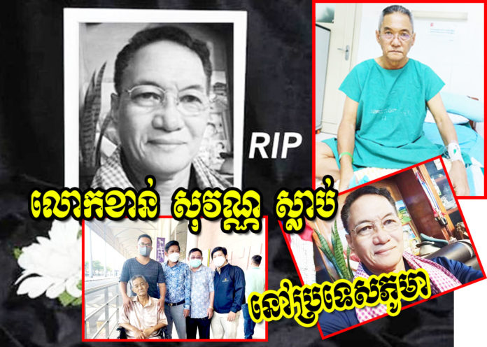 ភ្នំពេញ ៖ លោក ខាន់ សុវណ្ណ ប្រធានអង្គព្រោកប្រាជ្ញ ដែលនិយាយពីសង្គមនិងនយោបាយតាមបណ្តាញសង្គម ហ្វេសប៊ុក បានស្លាប់នៅប្រទេសភូមា កាលពីយប់ថ្ងៃទី២៣ ខែមីនា ឆ្នាំ២០២២ ដោយរោគាពាធ ក្នុងជន្មាយុ ៦៦ឆ្នាំ ។