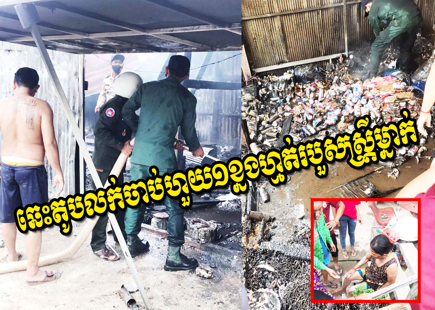 ខេត្តស្វាយរៀង ៖ ផ្ទះលក់ចាប់ហួយមួយខ្នង ត្រូវបានអគ្គិភ័យឆាបឆេះ បណ្តាលឱ្យរងការខូចខាតអស់ទាំងស្រុង និងបណ្តាលឱ្យស្ត្រីជាម្ចាស់ផ្ទះទទួលរងរបួសទៀតផង ដោយសារមូលហេតុផ្តើមចេញពីការឆ្លងចរន្តអគ្គិសនី (ទុស្សេខ្សែភ្លើង)។