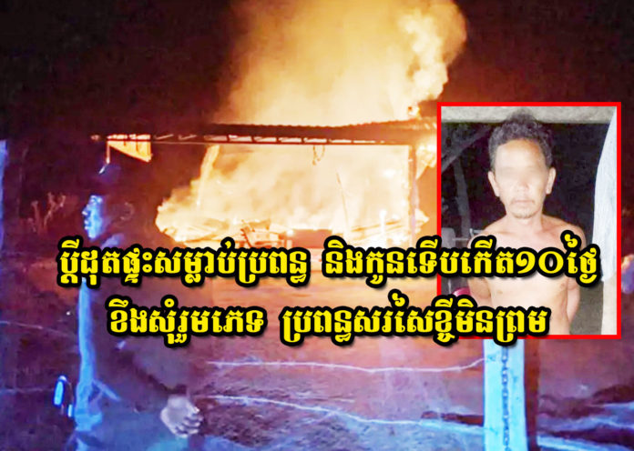 ខេត្តកំពង់ស្ពឺ ៖ បុរសជាប្តីល្មោភកាមម្នាក់ ក្រោយពីផឹកស្រាស្រវឹងធ្លាក់ភ្នែក បានឡើងមកលួងលោមសុំប្រពន្ធរួមភេទ ទាំងដែលប្រពន្ធរបស់ខ្លួនសរសៃខ្ចី ទើបនឹងសម្រាលកូនបាន ១០ថ្ងៃ កំពុងដេកបំបៅដោះកូន លុះប្រពន្ធប្រកែកមិនព្រម ជាហេតុធ្វើឱ្យកើតមានជម្លោះពាក្យសម្តីនឹងគ្នា ស្រាប់តែប្តីកំណាចផ្ទុះកំហឹងខ្លាំង ក៏ធ្វើសកម្មភាពដុតផ្ទះចោល បំណងដុតសម្លាប់ទាំងប្រពន្ធនិងកូនតូច បណ្តាលឆាបឆេះផ្ទះហ្មត់ តែសំណាងល្អ ស្ត្រីជាប្រពន្ធបានបីកូនរត់ចុះពីលើផ្ទះទាន់។