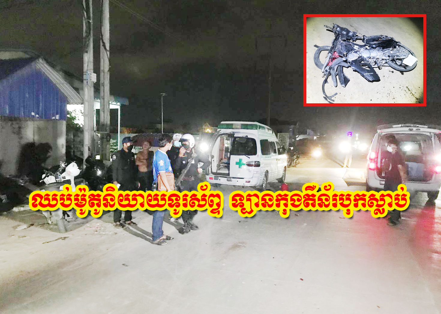 ហេតុការណ៍គ្រោះថ្នាក់ចរាចរណ៍ខាងលើនេះ បានកើតឡើង កាលពីវេលាម៉ោង ១២និង៥០នាទីរំលងអធ្រាត្រ ឈានចូលថ្ងៃទី៣១ ខែមីនា ឆ្នាំ២០២២ ត្រង់ចំណុចជិតច្រកចូលបុរីសន្តិភាព២ ក្នុងភូមិស្រែជម្រៅ សង្កាត់ចោមចៅទី២ ខណ្ឌពោធិ៍សែនជ័យ។