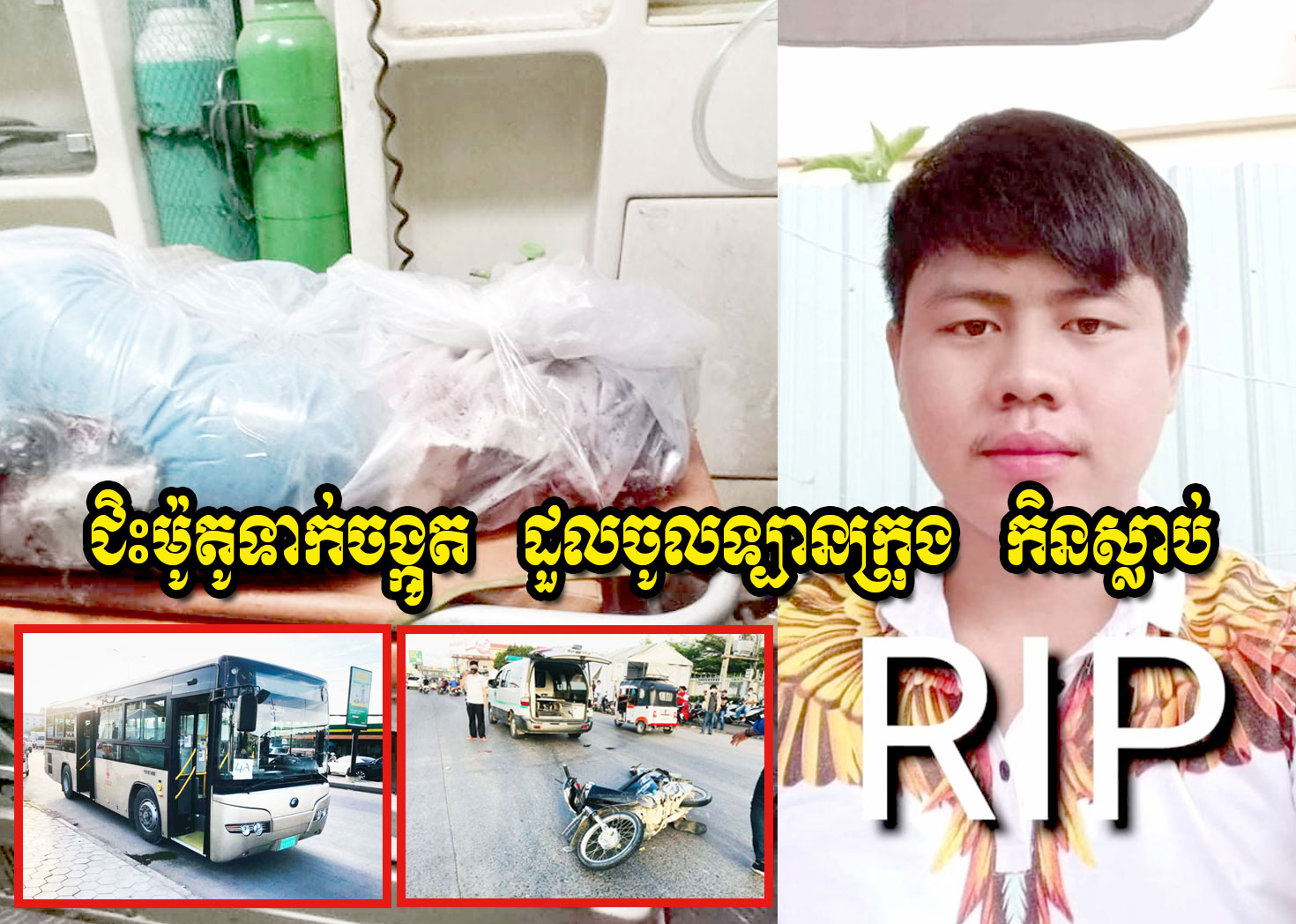 ជិះម៉ូតូទាក់ចង្កូតដួលចូលឡានក្រុងកិនស្លាប់