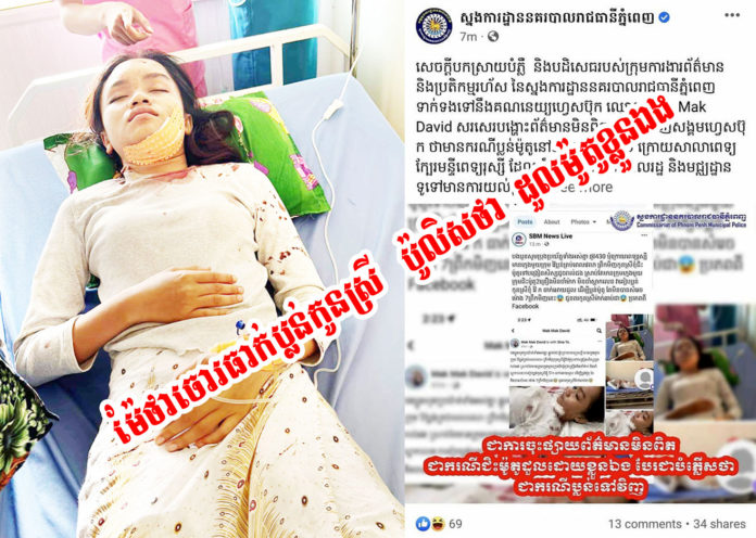 គួរបញ្ជាក់ថា កាលពីរសៀលថ្ងៃទី០៨ ខែមេសា ឆ្នាំ២០២២ មានគណនីហ្វេសប៊ុក ឈ្មោះ Mak Mak David បានបង្ហោះរូបថតចំនួន ៣សន្លឹក បង្ហាញពីស្ថានភាពនារីវ័យក្មេងម្នាក់ ស្ថិតក្នុងសភាពរងរបួសធ្ងន់ត្រង់បំពង់ក និងមានឈាមប្រឡាក់ពេញខ្លួន ព្រមទាំងភ្ជាប់ជាមួយសំណេររៀបរាប់ថា “បងប្អូនសូមប្រយ័ត្នទាំងអស់គ្នា ផ្លូវ៤៣០ ម្តុំក្រោយពេទ្យរុស្ស៉ី មានក្មេងមួយក្រុម វ៉ៃប្លន់គ្រប់ពេលវេលា ព្រឹកមិញកូនស្រីខ្ញុំ ជិះម៉ូតូទៅបង្រៀនសិស្ស ដូចរាល់ដង ស្រាប់តែមានក្រុមក្មេងមួយក្រុម ជិះម៉ូតូ ២គ្រឿង មិនចាំម៉ាក មិនចាំស្លាកលេខ វាគាបប្លន់កូនស្រីខ្ញុំ វ៉ៃក ធាក់ឱ្យដួល ដើម្បីប្លន់ម៉ូតូ តែមិនបានសម្រេច ម៉ោង ៧ព្រឹកមិញនេះ ជូនពរកូនស្រីម៉ាក់ឆាប់ជា…”។