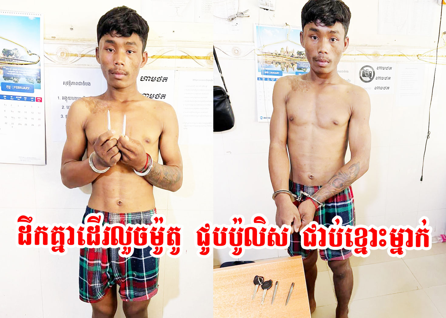 ភ្នំពេញ ៖ ជនសង្ស័យម្នាក់ ក្នុងចំណោមបក្ខពួក ២នាក់ ត្រូវបានសមត្ថកិច្ចធ្វើការឃាត់ខ្លួន ពាក់ព័ន្ធនឹងករណីលួចម៉ូតូប្រជាពលរដ្ឋ កាលពីវេលាម៉ោង ៧និង៣០នាទីព្រឹក ថ្ងៃទី១៩ ខែមេសា ឆ្នាំ២០២២ នៅចំណុចផ្លូវលំ ជិតកន្លែងលក់ទឹកត្នោតជូរ ក្នុងភូមិទួលពង្រ សង្កាត់ចោមចៅទី១ ខណ្ឌពោធិ៍សែនជ័យ។