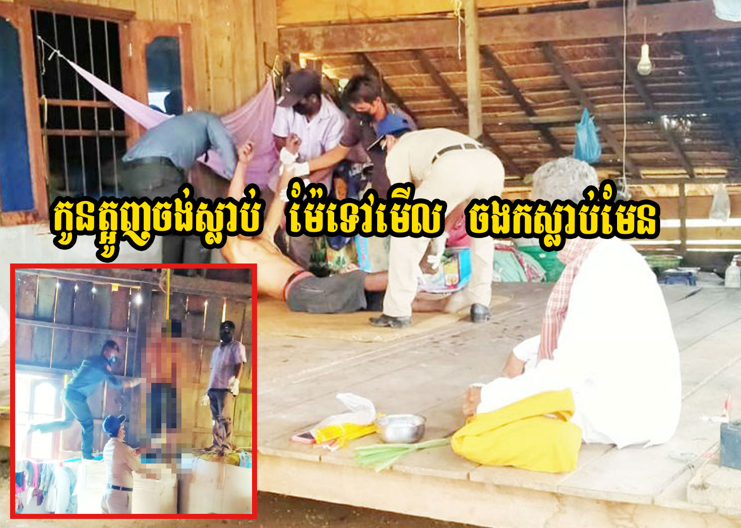 ខេត្តឧត្តរមានជ័យ ៖ បុរសម្នាក់ មិនដឹងថាមានវិបត្តិផ្លូវចិត្តរឿងអ្វី ចេះតែនិយាយទូរស័ព្ទជាមួយម្តាយ ត្អូញថាលែងចង់រស់នៅតទៅទៀតហើយ ចង់តែស្លាប់ទេ លុះក្រោយមក ម្តាយទូរស័ព្ទមិនចូល ក៏ទូរស័ព្ទប្រាប់សាច់ញាតិដែលនៅជិតនោះ ឱ្យជួយទៅមើលកូនប្រុសផង លុះសាច់ញាតិទៅមើល ក៏ឃើញថាជនរងគ្រោះបានចងកស្លាប់ទៅហើយ បង្កឱ្យមានការផ្អើលឆោឡោ រាយការណ៍ប្រាប់សមត្ថកិច្ចចុះពិនិត្យភ្លាមៗ។