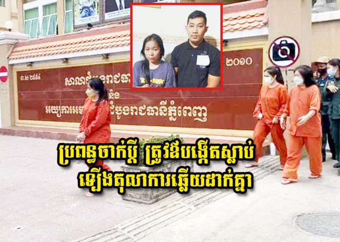 ភ្នំពេញ ៖ សាលាដំបូងរាជធានីភ្នំពេញ កាលពីថ្ងៃទី២៥ ខែមេសា ឆ្នាំ២០២២ បានលើកយកសំណុំរឿងឃាតកម្ម ប្តីប្រពន្ធ២នាក់ ចាក់សម្លាប់ឪពុកបង្កើត និងឪពុកក្មេក បណ្តាលឱ្យស្លាប់ នៅខណ្ឌមានជ័យ កាលពីអំឡុងខែសីហា ឆ្នាំ២០២១ កន្លងទៅ ប៉ុន្តែនៅក្នុងរង្វង់ក្រចកសេះ នាពេលសវនាការនោះ ជនជាប់ចោទជាប្តី បានឆ្លើយទម្លាក់កំហុសដាក់ទៅលើប្រពន្ធ ជាអ្នកចាក់សម្លាប់ឪពុកបង្កើតខ្លួនឯង ខណៈដែលស្ត្រីជាប្រពន្ធ ក៏បានចោទទៅប្តីវិញថា ជាអ្នកចាក់សម្លាប់ឪពុកក្មេក ទើបតុលាការបានប្រកាសចាត់របៀបឱ្យបើកការស៊ើបអង្កេតឡើងវិញ មុន នឹងជំនុំជម្រះលើអង្គសេចក្តី ។