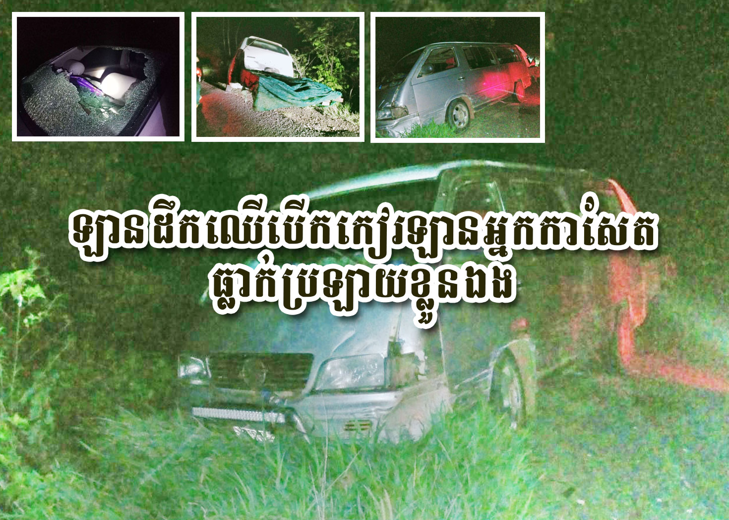 ខេត្តព្រះវិហារ ៖ រថយន្តម៉ាកសាំងយ៉ុងដឹកឈើ របស់មេឈ្មួញជើងខ្លាំងប្រចាំស្រុកជ័យសែន និងស្រុករវៀង ខេត្តព្រះវិហារ ឈ្មោះខ្លា បានបើកបុកនិងកៀររថយន្តកូរ៉ូលឡា របស់អ្នកកាសែត ធ្វើឱ្យរថយន្តដឹកឈើ រេចង្កូតធ្លាក់ផ្លូវ ចូលប្រឡាយដោយខ្លួនឯង តែសំណាងល្អ មិនបង្ករបួសដល់មនុស្សណាម្នាក់ឡើយ។