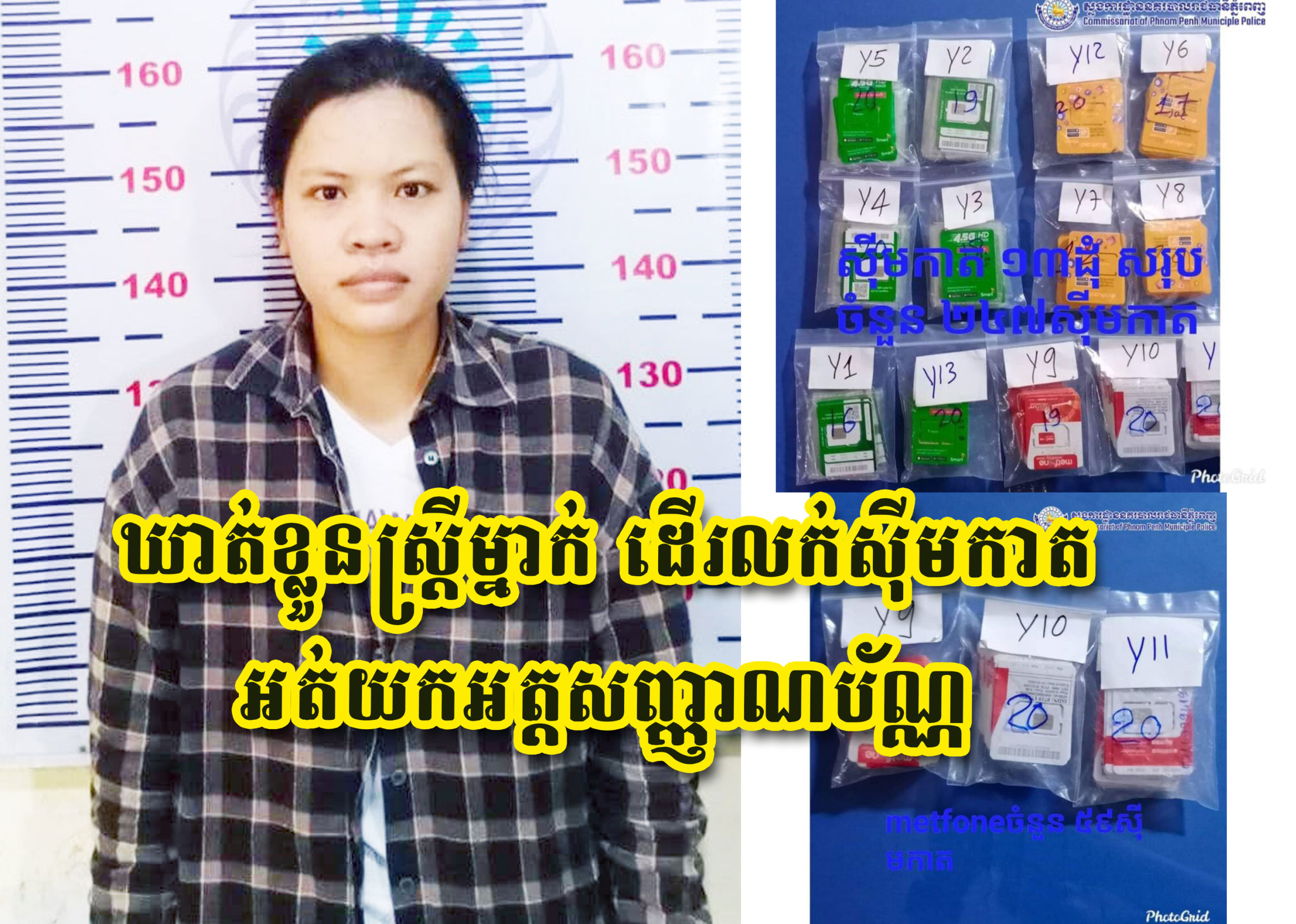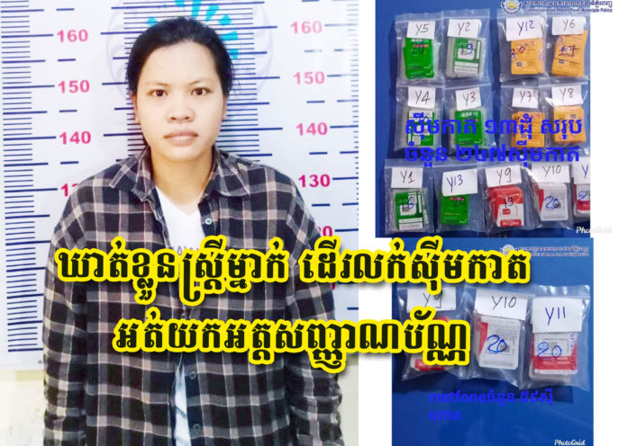 ជាមួយនិងមន្ត្រីក្រសួងប្រៃសណីយ៍ ទូរគមនាគមន៍កម្ពុជា និងកម្លាំងនៃនាយកដ្ឋានប្រឆាំងបទល្មើសបច្ចេកវិទ្យា បានឃាត់ខ្លួនស្ត្រីម្នាក់ លក់ស៊ីមកាតទូរស័ព្ទ មិនយកអត្តសញ្ញាណប័ណ្ណ និងក្លែងបន្លំអត្តសញ្ញាណប័ណ្ណ ។