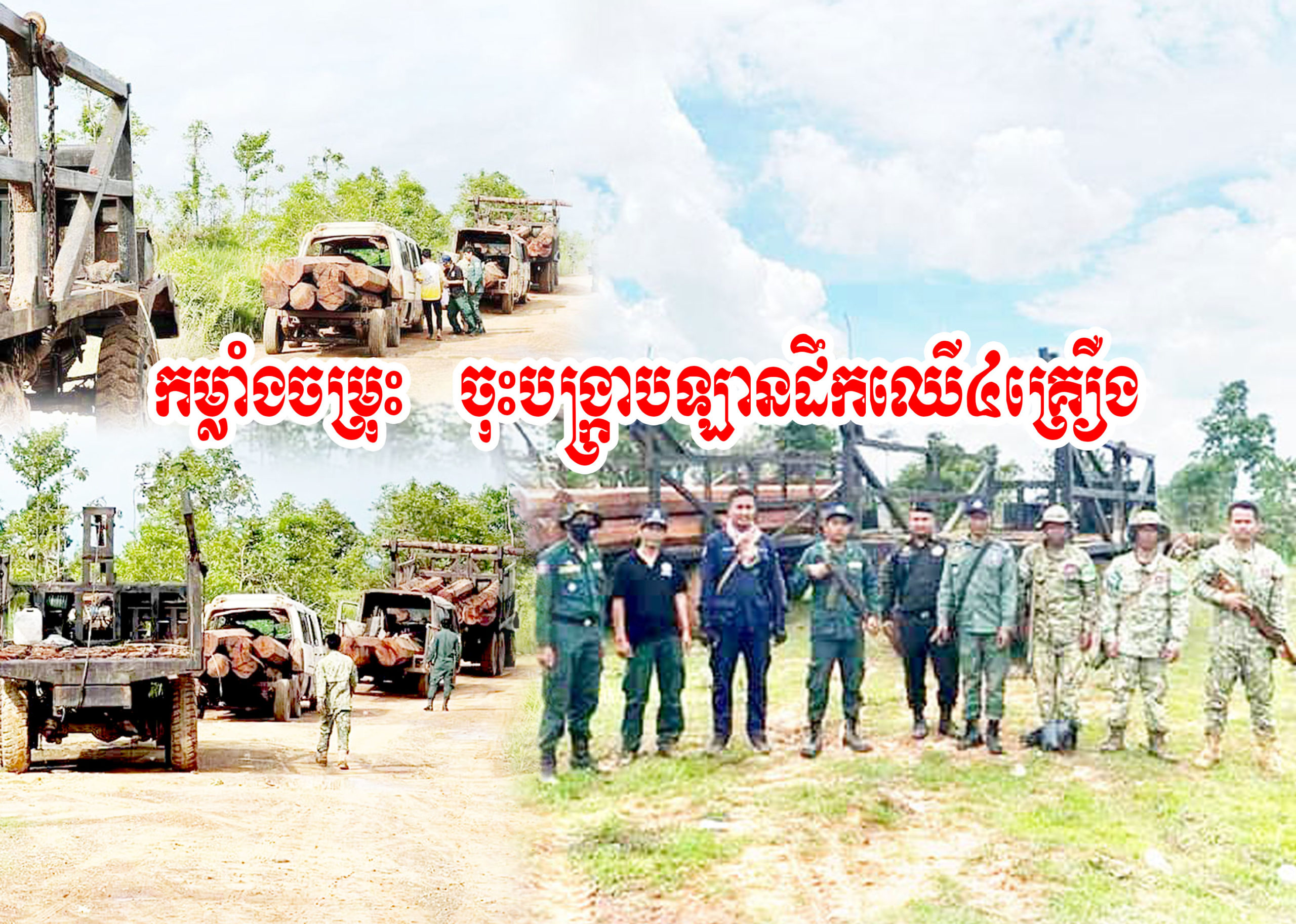 កម្លាំងចម្រុះ ចុះបង្ក្រាបឡានដឹកឈើ៤គ្រឿង