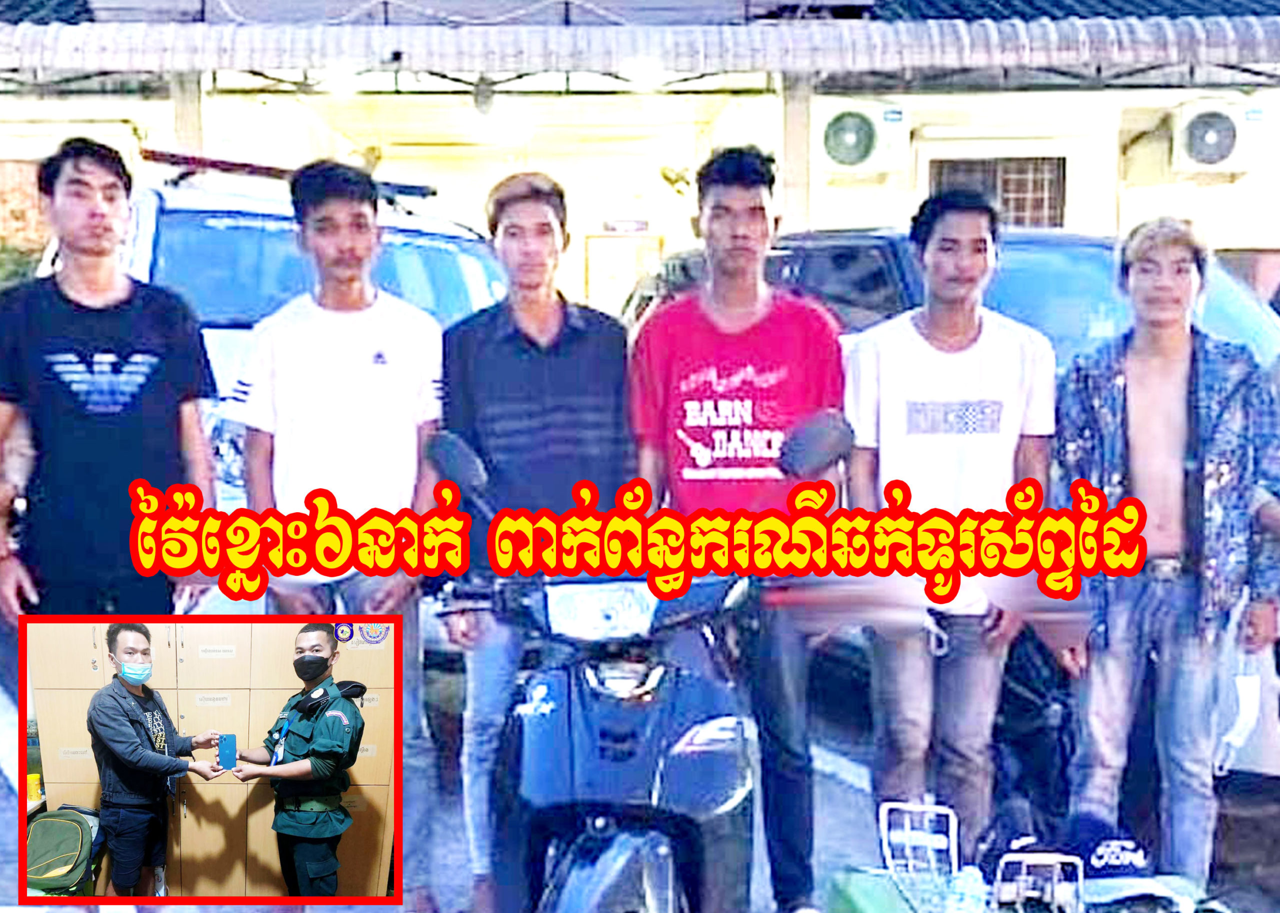 ខេត្តព្រះសីហនុ ៖ សមត្ថកិច្ចខេត្តព្រះសីហនុ បានឃាត់ខ្លួនជនសង្ស័យចំនួន ៦នាក់ ដែលពាក់ព័ន្ធនៅក្នុងករណីលួចមានស្ថានទម្ងន់ទោស (ឆក់ទូរស័ព្ទដៃ) ពីជនជាតិវៀតណាម ម្នាក់។