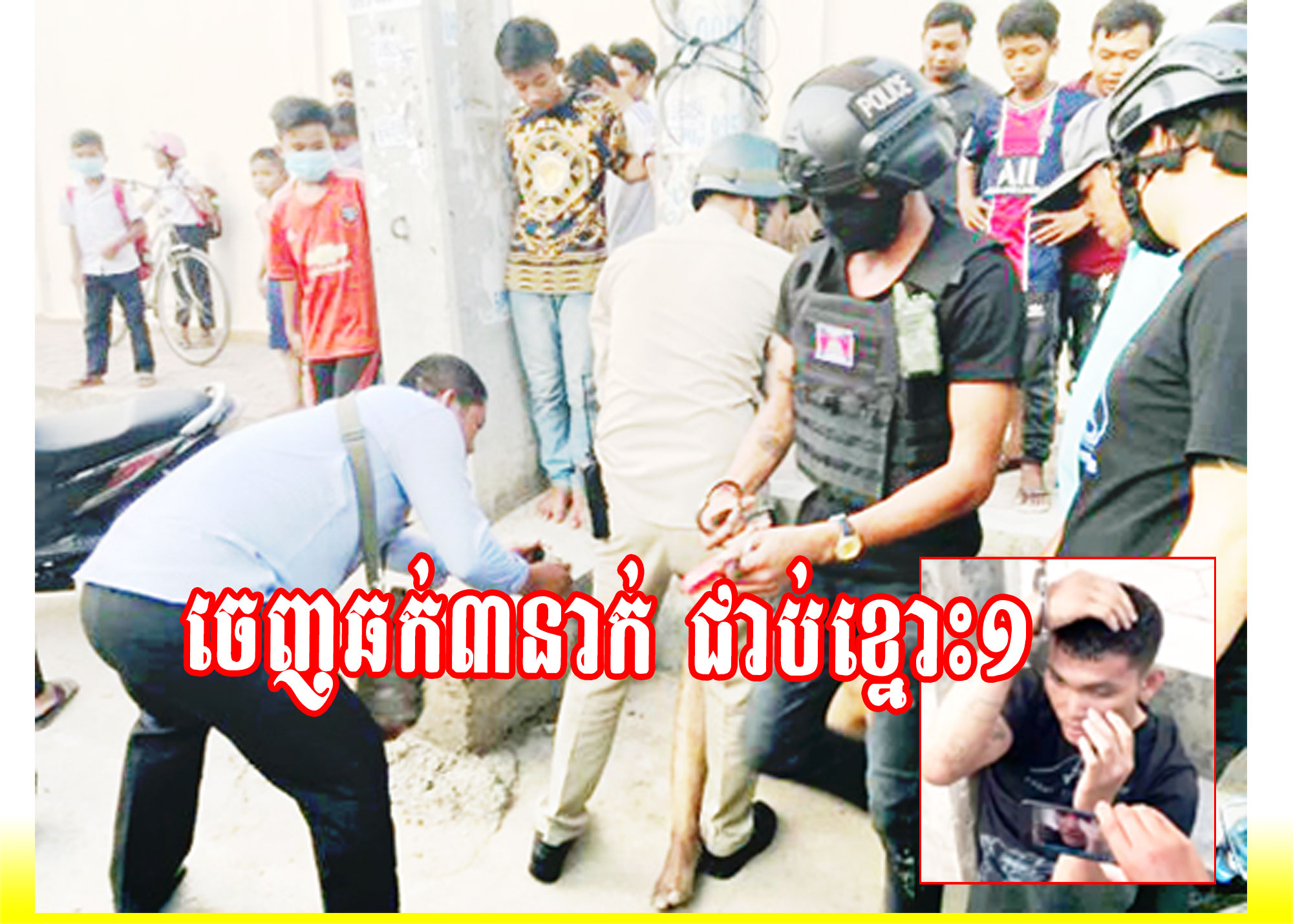 ប្រភពពីប្រជាពលរដ្ឋ បានឱ្យដឹងថា មុនពេលកើតហេតុ គេឃើញជនសង្ស័យមានគ្នា ៣នាក់ ជិះម៉ូតូ ២គ្រឿង បានជិះឆ្វែលចុះឆ្វែលឡើងក្បែរជនរងគ្រោះ ហើយក៏ធ្វើសកម្មភាពឆក់ទូរស័ព្ទ ពីជនរងគ្រោះបានសម្រេច បម្រុងជិះគេចខ្លួន តែចំពេលផ្លូវស្ទះ ទើបជនសង្ស័យម្នាក់ ជិះម៉ូតូម៉ាកស៊ុយហ្ស៊ុយគី និច ពណ៌ក្រហមលាយខ្មៅ បានបុកជាមួយរថយន្ត និងជ្រុលទៅបុកទ្វារសាលាអង្គការភាពញញឹម ហើយស្ទុះក្រោករត់ រហូតដល់ចំណុចព្រំប្រទល់ខណ្ឌមានជ័យ ទើបប្រជាពលរដ្ឋនាំគ្នាដេញស្ទាក់ចាប់បាន ហើយស្វាគមន៍យ៉ាងចាស់ដៃ ។ ចំណែកជនសង្ស័យពីរនាក់ទៀត បានជិះម៉ូតួរត់គេចខ្លួនបាត់ស្រមោល។