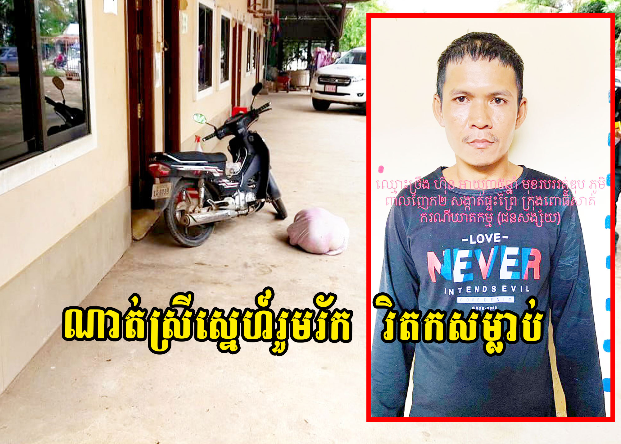 ខេត្តពោធិ៍សាត់ ៖ ស្ត្រីម្នាក់ ត្រូវបានប្រុសស្នេហ៍របស់ខ្លួន ណាត់ជួបក្នុងផ្ទះសំណាក់ លុះក្រោយពីរួមរ័កជាមួយគ្នារួចរាល់ ស្រាប់តែខាងប្រុសបែកគំនិតធ្វើសកម្មភាពរឹតកស្រីស្នេហ៍របស់ខ្លួន រហូតដល់ស្លាប់យ៉ាងអាណោចអាធ័ម បន្ទាប់មកបានយកភួយមករុំខ្ចប់សព ដាក់ចោលនៅខាងមុខបន្ទប់ផ្ទះសំណាក់ ចំណែកជនសង្ស័យជាឃាតករ បានព្យាយាមគេចខ្លួនអស់រយៈពេល ៧ខែ ទើបត្រូវសមត្ថកិច្ចតាមចាប់ខ្លួនបាន នាំយកមកចាត់ការរតាមច្បាប់។