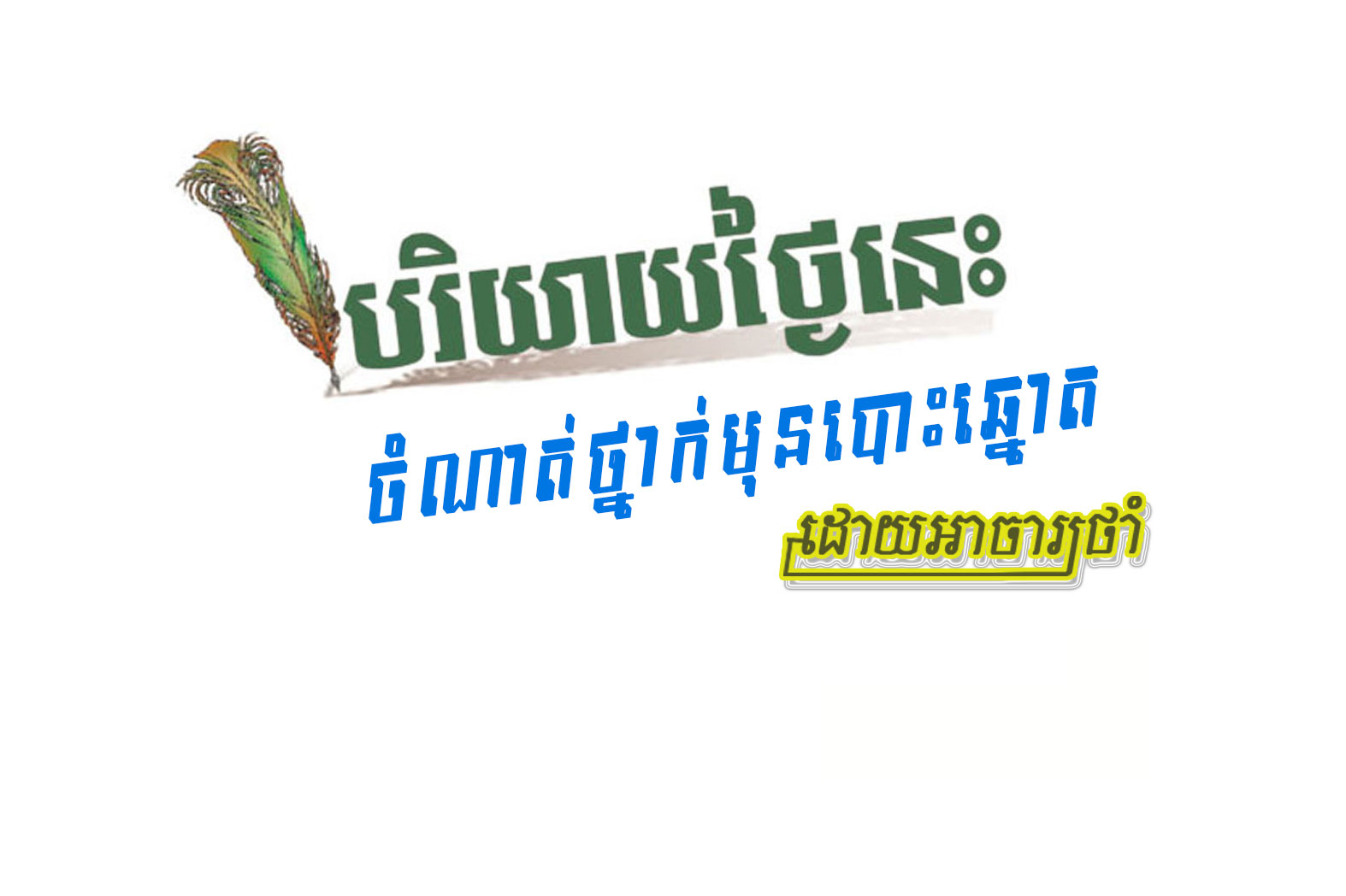 មិនថាតែអ្នកនយោបាយ អ្នកវិភាគនោះទេ ដែលមើលធ្លុះពីលទ្ធផលនៃការបោះឆ្នោតជ្រើសក្រុមប្រឹក្សាឃុំ-សង្កាត់ នា ពេលខាងមុខនេះ សូម្បីប្រជាពលរដ្ឋសាមញ្ញ តែគាត់ចូលចិត្តតាមដានរឿងនយោបាយ ក៏ហ៊ានដាក់ចំណាត់ថ្នាក់ ចំពោះគណបក្ស ដែលចូលរួមបោះឆ្នោត។ នយោបាយកម្ពុជាបច្ចុប្បន្ន ក៏មិនខុសពីសម័យសង្គមរាស្ត្រនិយម នោះឡើយ គឺអ្នកនយោបាយ “ជ្រំជើង” តែដដែលៗ អ្នកឈ្នះក៏ដដែល អ្នកចាញ់ក៏ដដែល ទើបគេទាយលទ្ធផលឆ្នោតមិនសូវខុស ដែល “នគរធំ” ក្តាប់បាន ក៏លើកពី “ចំណាត់ថ្នាក់មុនបោះឆ្នោត” មកធ្វើប្រធានបទបរិយាយថ្ងៃនេះ…។