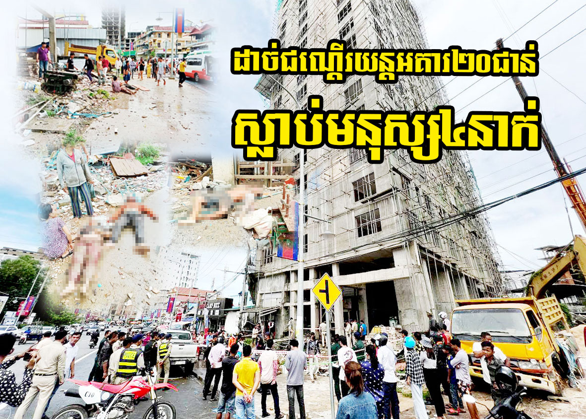 គ្រោះអកុសល ដាច់ខ្សែកាប្លិ៍សណ្តោងជណ្តើរយន្ត ធ្លាក់ចុះដី បណ្តាលឱ្យកម្មករប្រុសស្រី ចំនួនបីនាក់ ស្លាប់ភ្លាមនៅនឹងកន្លែង និងចំណែកម្នាក់ទៀត បានស្លាប់នៅមន្ទីរពេទ្យ ខណៈដែលជនរងគ្រោះម្នាក់ផ្សេងទៀត រងរបួសធ្ងន់ និងកំពុងសង្គ្រោះបន្ទាន់ក្នុងមន្ទីរពេទ្យ។