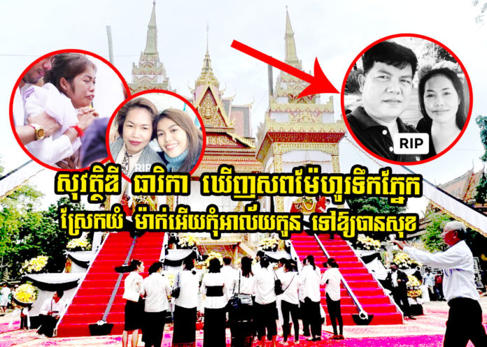 សុវត្ថិឌី ធារីកា ទួញយំបន្តថា «ហេតុអីម៉ាក់ហូរទឹកភ្នែក ម៉ាក់អើយម៉ាក់ ម៉ាក់កុំអាឡោះអាល័យកូនណាម៉ាក់ ខ្ញុំមើលថែប្អូនបានណាម៉ាក់ សូមម៉ាក់និងប៉ា ទៅឲ្យបានសុខ ហើយកើតជាតិណាៗ សូមឲ្យកូនបានកើតជាកូនម៉ាក់និងប៉ាទៀត កូនសូមជូនដំណើរលោកអ្នកមានគុណ ជាចុងក្រោយ…»។