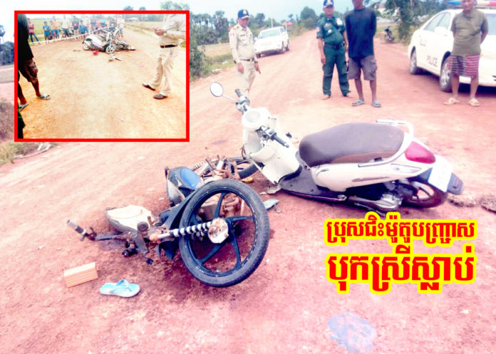ប្រុសជិះម៉ូតូបញ្ច្រាស បុកស្រីស្លាប់
