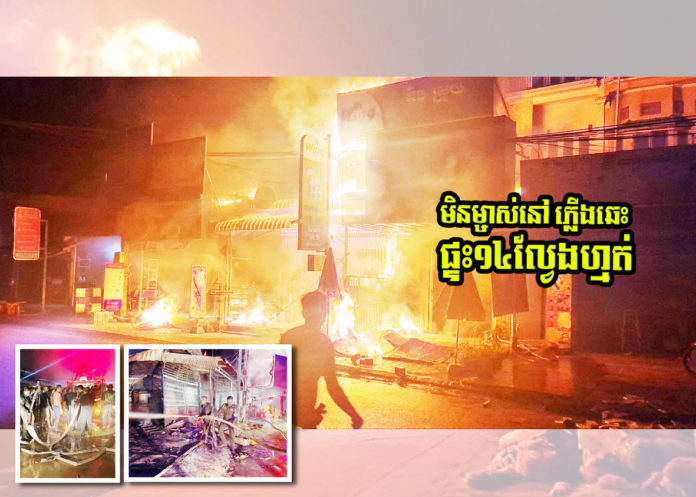 ខេត្តកំពង់ស្ពឺ ៖ ផ្ទះចំនួន ១៤ល្វែង ត្រូវបានអគ្គិភ័យឆាបឆេះបំផ្លាញអស់ ដោយមូលហេតុផ្តើមចេញពីការឆាបឆេះផ្ទះ ១ល្វែង ដែលម្ចាស់មិននៅ ចាក់សោចោល ជាហេតុធ្វើឱ្យរាលឆេះដល់ផ្ទះប្រជាពលរដ្ឋជិតខាង សរុប ១៤ល្វែង។