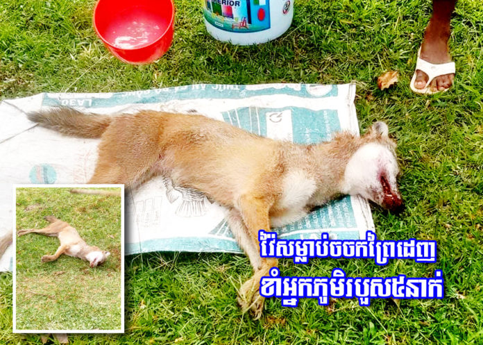 ខេត្តកំពង់ឆ្នាំង ៖ ចចកព្រៃមួយក្បាល ត្រូវបានប្រជាពលរដ្ឋលើកគ្នាដេញព័ទ្ធវាយសម្លាប់ បន្ទាប់ពីសត្វចចកព្រៃ ១ក្បាលនេះ មិនដឹងជាចេញមកពីណា បានដេញខាំប្រជាពលរដ្ឋនៅក្នុងភូមិ បណ្តាលឱ្យរងរបួសចំនួន៥នាក់។