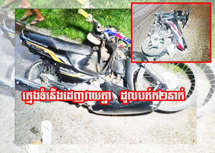 ភ្នំពេញ ៖ ក្មេងស្ទាវឈាមរាវចំនួន២ក្រុម បានធ្វើសកម្មភាពជិះម៉ូតូប្រដេញវាយកាប់ចាក់គ្នាពេញដងផ្លូវ លុះភាគីម្ខាងព្យាយាមជិះម៉ូតូរត់គេច ក៏វ៉ាក់នឹងរថយន្ត ១គ្រឿង ទើបគេចចង្កូតដួល រងរបួសធ្ងន់ចំនួន២នាក់។