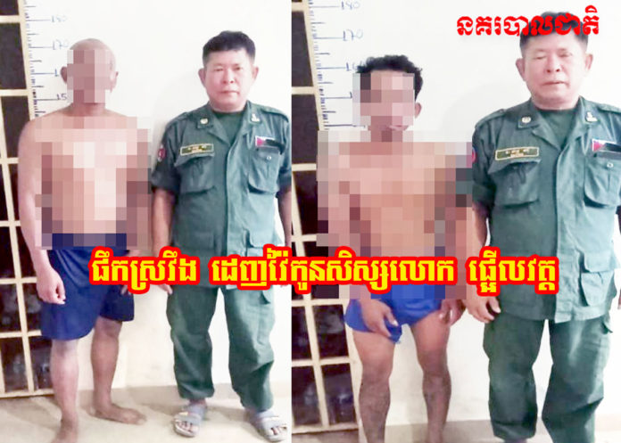 ជនសង្ស័យទាំង២នាក់ដែលត្រូវបានឃាត់ខ្លួន ទី១-ឈ្មោះមិត ម៉ៅ ហៅក្អាត់ ភេទប្រុស អាយុ២៦ឆ្នាំ រស់នៅភូមិតាស្តី ឃុំវាល ស្រុកកណ្តៀង និងទី២-ឈ្មោះស៊ុយ រិទ្ធី ភេទប្រុស អាយុ៣៣ឆ្នាំ រស់នៅភូមិស្តុកជុំ ឃុំកោះជុំ ស្រុកកណ្តៀង។ ចំណែកកូនសិស្សលោកដែលរងរបួស មានឈ្មោះនី។