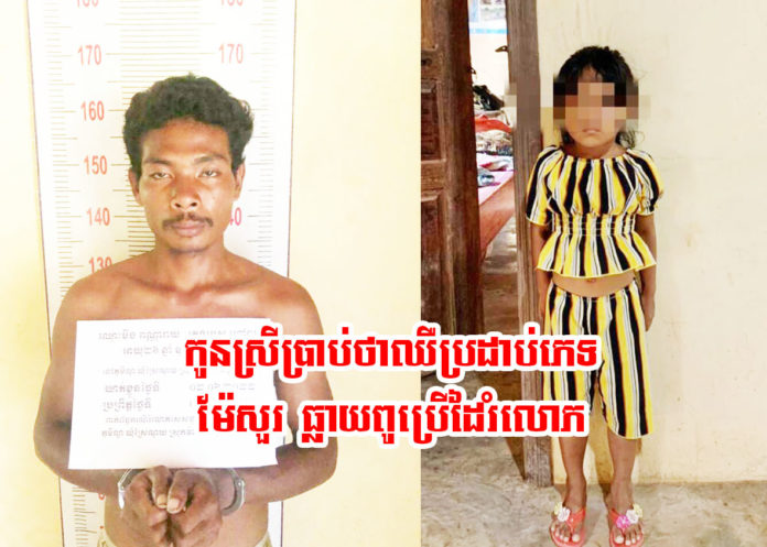 ខេត្តសៀមរាប ៖ ជនសង្ស័យម្នាក់ បានល្បួងក្មួយស្រីសាច់ថ្លៃរបស់ខ្លួនដែលទើបនឹងមានអាយុ៥ឆ្នាំ ឡើងជិះម៉ូតូជាមួយ រួចក៏ដឹកទៅផ្ទះរបស់ខ្លួន លុះទៅដល់ ក៏បើករឿងសិចក្នុងទូរស័ព្ទមើល ២នាក់ក្មួយស្រី ក្រោយមក មានអារម្មណ៍ផ្លូវភេទ ក៏បែកគំនិតប្រើដៃលូកលេងប្រដាប់ភេទក្មួយស្រី បណ្តាលឱ្យដាច់រលាត់ លុះត្រឡប់ទៅផ្ទះវិញ ក្មេងស្រីរងគ្រោះឈឺក្រហាយប្រដាប់ភេទពេក ទើបទម្លាយរឿងប្រាប់ម្តាយ ក៏ឈានដល់ការដាក់ពាក្យបណ្តឹង ចាប់ខ្លួនជនសង្ស័យ នាំយកទៅចាត់ការតាមច្បាប់។