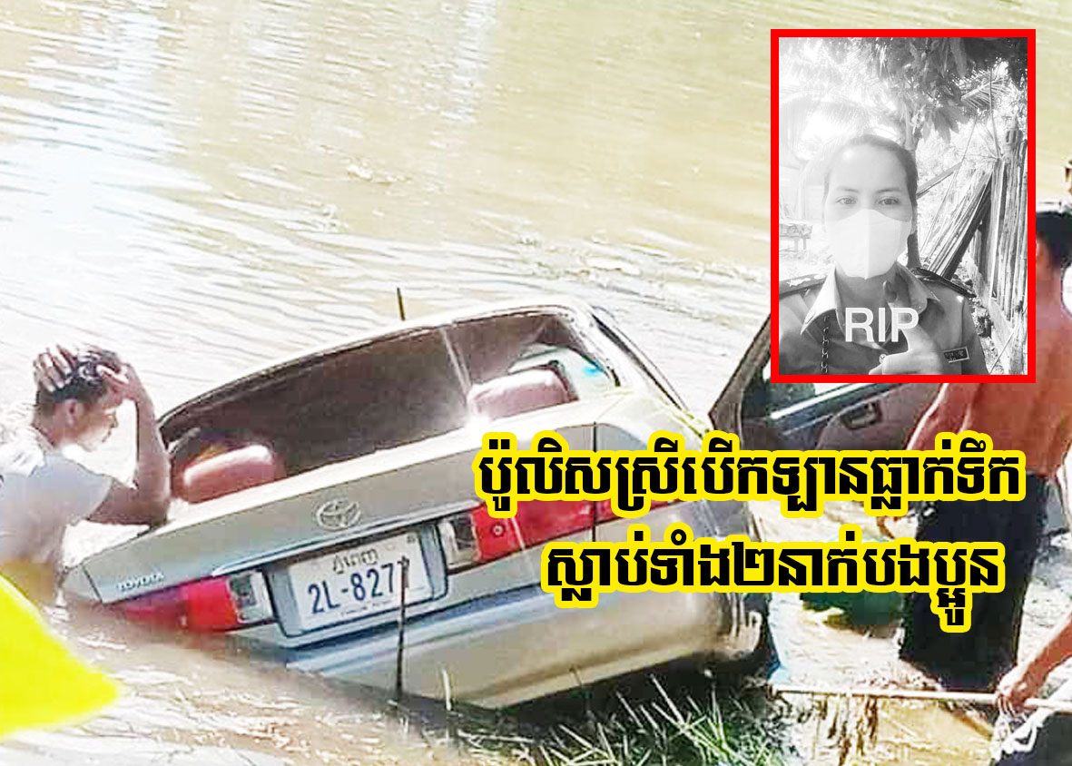 ខេត្តព្រៃវែង ៖ ស្ត្រីជាមន្ត្រីនគរបាលម្នាក់ កំពុងបំពេញបេសកកម្មយាមការិយាល័យបោះឆ្នោត បានបើករថយន្ត ១គ្រឿង ដឹកប្អូនប្រុសរបស់ខ្លួនទៅការិយាល័យបោះឆ្នោត ស្រាប់តែជួបគ្រោះថ្នាក់ក្រឡាប់រថយន្តធ្លាក់ទឹកប្រឡាយ បណ្តាលឱ្យឈ្លក់ទឹកស្លាប់យ៉ាងអាណោច អាធ័មទាំង២នាក់បងប្អូន។