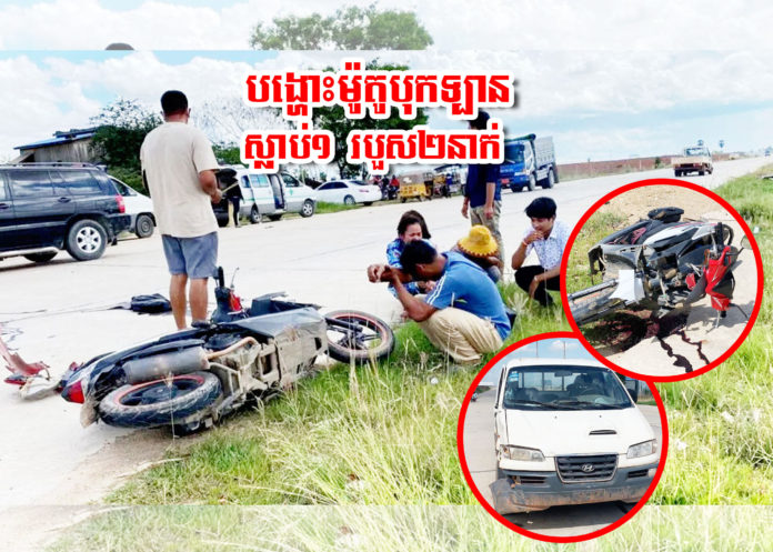 បង្ហោះម៉ូតូបុកឡាន ស្លាប់១ របួស២