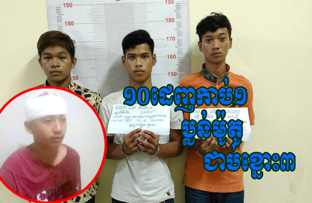 ខេត្តកណ្តាល ៖ ជនសង្ស័យ១ក្រុមមានគ្នាចំនួន១០នាក់ ប្រដាប់ដោយកាំបិតដាវគ្រប់ដៃ បានធ្វើសកម្មភាពដេញ កាប់យុវជនម្នាក់ចំនួន ៥កាំបិត រួចប្លន់យកម៉ូតូ១គ្រឿងទៅបាត់ដោយសុវត្ថិភាព លុះក្រោយមក ក៏ត្រូវសមត្ថកិច្ចជំនាញ ស្រាវជ្រាវតាមប្រមាញ់ចាប់ខ្លួនជនសង្ស័យ បានចំនួន៣នាក់ នាំយក មកចាត់ការតាមច្បាប់។