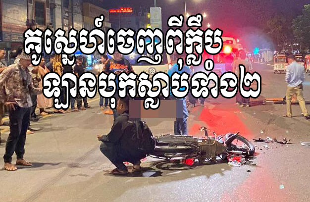 ភ្នំពេញ ៖ យុវជនម្នាក់ បាននាំសង្សាររបស់ខ្លួនចូលក្លឹបរាត្រីមួយកន្លែង លុះចេញមកវិញ ជិះម៉ូតូដឹកគ្នាឆ្លងផ្លូវដោយខ្វះការប្រុងប្រយ័ត្ន ក៏ត្រូវរថយន្តដឹកទំនិញធុនធំ ១គ្រឿង បើកក្នុងល្បឿនយ៉ាងលឿន ជ្រុលទៅបុកចំពីមុខយ៉ាងពេញទំហឹង បណ្តាលឱ្យដួលម៉ូតូ ខ្ទាតជនរងគ្រោះទាំង ២នាក់ទៅលើផ្លូវ និងត្រូវរថយន្តកិនពីលើស្លាប់ទាំង២នាក់នៅនឹងកន្លែងកើតហេតុយ៉ាងរន្ធត់ ចំណែករថយន្តបង្កហេតុ បានព្យាយាមបើករត់ តែត្រូវប្រជាពលរដ្ឋដេញឃាត់បានទាំងរថយន្ត និងអ្នកបើកបរ ប្រគល់ឱ្យសមត្ថកិច្ច។