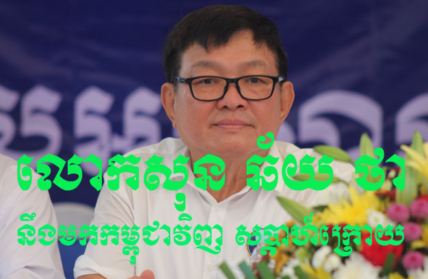 ភ្នំពេញ ៖ លោកសុន ឆ័យ អនុប្រធានគណបក្សភ្លើងទៀន និងជាអតីតតំណាងរាស្រ្តមណ្ឌលរាជធានីភ្នំពេញ នៃអតីតគណបក្សសង្រ្គោះជាតិ ដែលកំពុងស្ថិតនៅប្រទេសអូស្រ្តាលី ដែលជាប្រទេសលំនៅទី២ របស់លោក នោះ បានប្រកាសថា លោកនឹងវិលត្រឡប់មកប្រទេសកម្ពុជាវិញ នៅសប្តាហ៍ក្រោយ ដើម្បីប្រឈមតាមផ្លូវច្បាប់ ជាមួយពាក្យបណ្តឹងពីរ ពីគណៈកម្មាធិការជាតិរៀបចំការបោះឆ្នោត (គ.ជ.ប) និងគណបក្សប្រជាជនកម្ពុជា ដែលប្តឹងលោកទៅតុលាការ ។