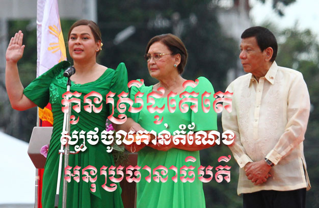 ក្នុងសន្ទរកថានៅក្នុងពិធីស្បថចូលកាន់តំណែងនៅទីក្រុង Davao ដែលជាស្រុកកំណើត លោកស្រីបានថ្លែងថា