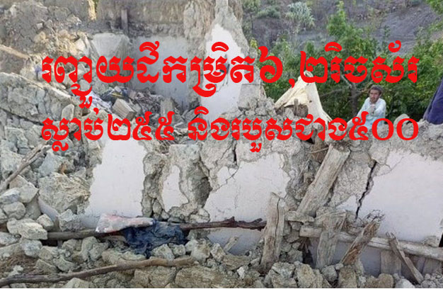 ទីភ្នាក់ងារសារព័ត៌មានរដ្ឋអាហ្វហ្គានីស្ថានបានរាយការណ៍ថាយ៉ាងហោចណាស់មនុស្ស២៥៥នាក់បានស្លាប់និងជាង៥០០នាក់រងរបួសនៅក្នុងហេតុការណ៍គ្រោះការរញ្ជួយដីវាយប្រហារខេត្តPaktikaភាគខាងកើតប្រទេសអាហ្វហ្គានីស្ថានកាលពីព្រឹកថ្ងៃពុធ ២២ មិថុនា​២០២២​។