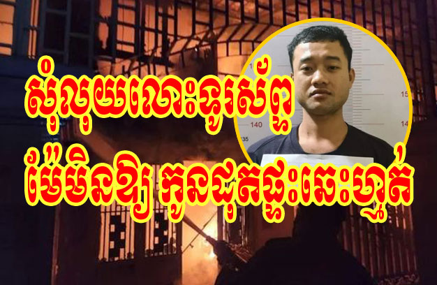 ខេត្តកណ្តាល ៖ យុវជនម្នាក់ ព្រោះតែដើរលេងផឹកស៊ីផុងខ្លួន ក៏យកទូរស័ពទៅដាក់បញ្ចាំ ៣០ដុល្លារ យកលុយ មកផឹកស៊ីបន្ត រហូតដល់អស់ពីខ្លួន ត្រឡប់ចូលផ្ទះវិញ ក៏រំអុកសុំលុយម្តាយ៣០ដុល្លារ ដើម្បីយកទៅលោះទូរស័ព្ទវិញ តែម្តាយមិនមានលុយឱ្យ ស្រាប់តែកូនប្រុសកំណាច មួម៉ៅក្តៅចិត្ត ធ្វើសកម្មភាពដុតផ្ទះចោល បណ្តាលឱ្យឆាបឆេះខ្ទេច ទីបំផុតត្រូវសមត្ថកិច្ចចាប់វាយខ្នោះ នាំយកទៅចាត់ការតាមច្បាប់។