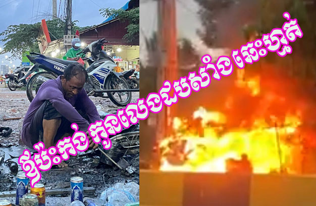 ភ្នំពេញ ៖ បុរសអភ័ព្វម្នាក់ បាននាំកូនប្រុសតូចអាយុ ១ខួប មកពីខេត្ត សុំដីចំណីផ្លូវមុខផ្ទះគេ ដើម្បីប្រកបរបរប៉ះកង់ម៉ូតូ និងលក់សាំងដប គ្រាន់បានប្រាក់ដោះស្រាយជីវភាព លុះពេលកំពុងប៉ះកង់ម៉ូតូឱ្យគេភ្លេចខ្លួន មិនចាប់អារម្មណ៍ នឹងកូន ប្រុសតូចយកដបសាំងមកកាន់លេង ធ្វើឱ្យកំពប់សាំង ឆាបឆេះតូបប៉ះកង់យ៉ាងសន្ធោសន្ធៅ ហើយភ្លាមនោះ បុរសជាឪពុក បានស្ទុះរត់ទៅឱបកូនប្រុសរត់ចេញពីអណ្តាតភ្លើង ចំណែករបស់របរអ្វីក៏ជញ្ជូនចេញមិនទាន់ ធ្វើឱ្យក្លាយជាចំណីភ្លើង ខ្ទេចអស់គ្មានសល់។
