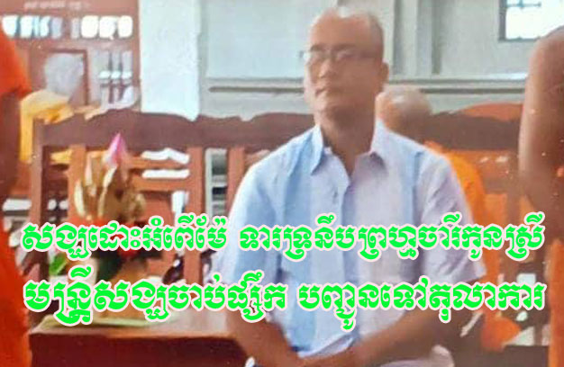 គួររំលឹកថា សង្ឃ ១អង្គ ដែលតាំងខ្លួនជាអ្នកចេះព្យាបាលជំងឺ ត្រូវបាននារីវ័យក្មេងម្នាក់ប្តឹងចោទប្រកាន់ថា បានសម្លុតគំរាម រំលោភនាងរហូតបានសម្រេច ខណៈដែលនាងបានទៅដេកកំដរម្តាយឈឺនៅក្នុងវត្ត ដោយបានគំរាមឱ្យនាងបូជាព្រហ្មចារី ដើម្បីជួយជីវិតម្តាយ រួចក៏ចាប់រំលោភនាង រហូតនាងមានផ្ទៃពោះម្តងរួចមកហើយ តែត្រូវសង្ឃអង្គនេះ ឱ្យនាងលេបថ្នាំរលូតកូន។ បន្ទាប់មក ក៏បន្តគំរាមរួមភេទជាមួយនាង រហូតដល់នាងមានផ្ទៃពោះជាលើកទី២ បែកធ្លាយរឿងរ៉ាវ បែរជាមិនទទួលកំហុស និងមិនទទួលខុសត្រូវអ្វីឡើយ។