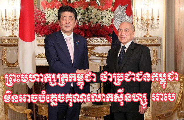 ប្រជាជនកម្ពុជាទាំងប្រុស ទាំងស្រី នឹងមិនអាចបំភ្លេចបានឡើយនូវគុណនិងការគំាទ្រយ៉ាងមានតម្លៃ ដែលឯកឧត្ដមនាយករដ្ឋមន្ត្រី ស៊ីនហ្សូ អាបេ បានចូលរួមចំណែកក្នុងនាមប្រទេសជប៉ុន ដើម្បីជួយកម្ពុជា លើការស្ថាបនាជាតិ។
