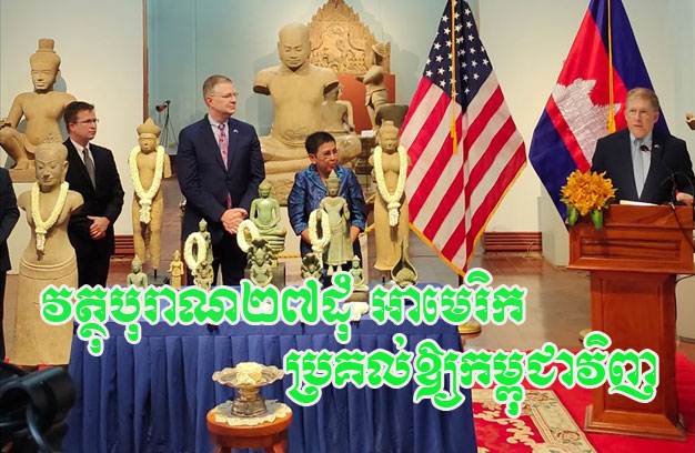 សហរដ្ឋអាមេរិក តាមរយៈលោកដានៀល ចេ គ្រីថេនប៊្រីង (Daniel J. Kritenbrink) ឧបការីរដ្ឋមន្រ្តីក្រសួងការបរទេសសហរដ្ឋអាមេរិក ទទួលបន្ទុកកិច្ចការអាស៊ីបូព៌ា និងប៉ាស៊ីហ្វិក បានបញ្ជូនវត្ថុបុរាណដែលត្រូវបានលួចយកចេញពីកម្ពុជា ចំនួន ២៧ដុំ មកប្រគល់ឱ្យកម្ពុជា វិញ។