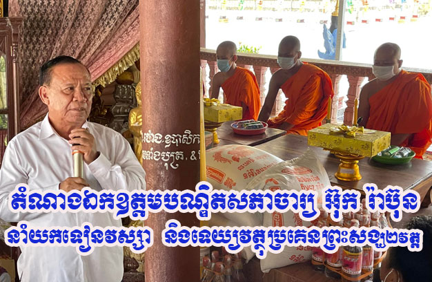 ខេត្តស្វាយរៀង ៖ នៅព្រឹកថ្ងៃទី១៥ ខែកក្កដា ឆ្នាំ២០២២ តំណាងឯកឧត្តមបណ្ឌិតសភាចារ្យ អ៊ុក រ៉ាប៊ុន រដ្ឋមន្រ្តីក្រសួង អភិវឌ្ឍន៍ជនបទ ឯកឧត្តមគឹម វាសនា និងឯកឧត្តម គឹម ធា សមាជិកព្រឹទ្ធសភាភូមិភាគ៦ និងថ្នាក់ដឹកនាំមន្រ្តីរាជការ នៃអគ្គាធិការដ្ឋាន បាននាំយកទៀនចំណាំព្រះវស្សា បច្ច័យ ទេយ្យវត្ថុ គ្រឿងឧបភោគ-បរិភោគ ទៅប្រគេនព្រះសង្ឃដែល គង់ចាំព្រះវស្សា ចំនួន ២វត្ត គឺវត្តតាស្អាង និងវត្តតាជ័យ។
