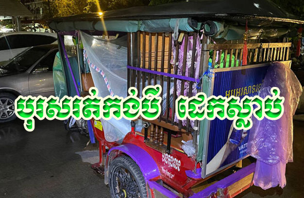 ភ្នំពេញ ៖ បុរសជាអ្នករត់ម៉ូតូកង់បីម្នាក់ បានឈប់ចត រួចដេកក្នុងកង់បីរបស់ខ្លួន យ៉ាងយូរ មិនឃើញចេញទៅដឹកភ្ញៀវដូចសព្វដងសោះ ទើបធ្វើឱ្យអ្នកជិតខាងនឹកឆ្ងល់ ចូលទៅមើល ស្រាប់តែប្រទះឃើញជនរងគ្រោះដេកស្លាប់រឹងស្តូក បង្កឱ្យមានការភ្ញាក់ផ្អើល រាយការណ៍ប្រាប់សមត្ថកិច្ច ចុះមកពិនិត្យភ្លាមៗ។