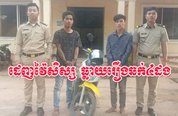 ខេត្តព្រះសីហនុ ៖ ជនសង្ស័យចំនួន២នាក់ បានធ្វើសកម្មភាពដេញវាយសិស្សសាលា បង្កឱ្យមានការភ្ញាក់ផ្អើលពេញដងផ្លូវ គាប់ជួនត្រូវបានកម្លាំងប៉ុស្តិ៍រដ្ឋបាលឃុំបិតត្រាំង កំពុងចេញល្បាត ប្រទះឃើញ ក៏ចាប់ក្របួចជាប់ នាំយកទៅសាកសួរ ស្រាប់តែធ្លាយរឿងជនសង្ស័យទាំង ២នាក់ គឺជាមុខសញ្ញាចាស់ ធ្លាប់ធ្វើសកម្មភាពឆក់ខ្សែក ចំនួន៤ដង។