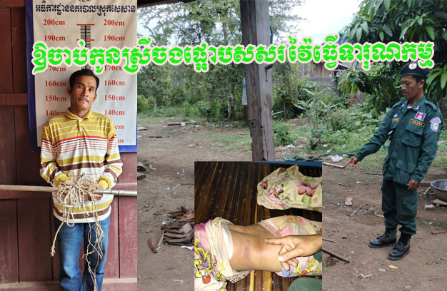 ខេត្តស្ទឹងត្រែង ៖ បុរសម្នាក់ គ្រាន់តែឮអ្នកភូមិម្នាក់បានមកប្រាប់ថា កូនស្រីរបស់ខ្លួនម្នាក់ ដែលទើបនឹងមានអាយុ១០ឆ្នាំ បានទៅលួចអង្កររបស់គេ ស្រាប់តែឆេះឆួលកំហឹង ចាប់កូនស្រីចងផ្អោបសសរ រួចវាយធ្វើសកម្មភាពវាយដំ បណ្តាលឱ្យមានស្នាមជាំពេលខ្នង ទីបំផុតត្រូវសមត្ថកិច្ចចាប់ឃាត់ខ្លួន នាំយកទៅចាត់ការតាមច្បាប់។
