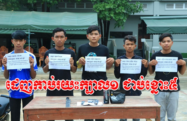 ខេត្តបន្ទាយមានជ័យ ៖ ក្មេងទំនើង ១ក្រុម មានគ្នា ៥នាក់ ប្រដាប់ដោយកាំបិតច្នៃ ១ដើម បានធ្វើសកម្មភាពដេញកាប់ប្រហារ ទៅលើយុវជន ២នាក់ ដែលធ្លាប់មានជម្លោះនឹងគ្នាពីមុនមក បណ្តាលឱ្យយុវជនម្នាក់ រងរបួសរយះក្បាលយ៉ាងធ្ងន់ និងត្រូវបានក្រុមគ្រួសារដឹកបញ្ជូនទៅសង្គ្រោះនៅមន្ទីរពេទ្យ ចំណែកក្រុមជនដៃដល់ បានព្យាយាមរត់គេចខ្លួនបាន ១យប់ ក៏ត្រូវកម្លាំងអាវុធហត្ថស្រាវជ្រាវក្របួចជាប់ទាំង៥នាក់ នាំយកទៅចាត់ការតាមច្បាប់។