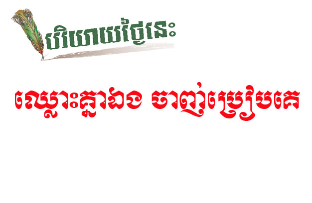 អតីតគណបក្សសង្គ្រោះជាតិ (CNRP) ជាង៤ឆ្នាំកន្លងមកនេះ ព្រោះតែឈ្លោះគ្នាឯងមិនស្វាង បានជាចាញ់ប្រៀបបក្ស កាន់អំណាច រហូត ទោះជាលោតចេញភ្លើងទៀន មកជំនួស CNRP ក៏នៅតែចាញ់គេ។ គណបក្សប្រជាជនកម្ពុជា (CPP) ដែលជាបក្សកាន់អំណាច បើសិនជាបែកបាក់ផ្ទៃក្នុង ឬធ្វើឱ្យប្រជាពលរដ្ឋអាក់អន់ចិត្ត ដោយសារការខូចខាតបរិស្ថានធម្មជាតិ ក៏ជាផ្លូវនាំទៅរកការចាញ់ប្រៀបអ្នកថ្មី។ មហាអំណាចរុស្ស៊ី និងមហាអំណាចចិន ឃើញឈ្លោះគ្នាឯង ឈាមហូររាល់ថ្ងៃ និង ត្រៀមបង្ហូរឈាមគ្នា នឹងចៀសមិនផុតពីការចាញ់ប្រៀបអាមេរិក ដែល “នគរធំ” ក្តាប់បាន ក៏លើកពី “ឈ្លោះគ្នាឯង ចាញ់ ប្រៀបគេ” មកធ្វើប្រធានបទបរិយាយថ្ងៃនេះ…។