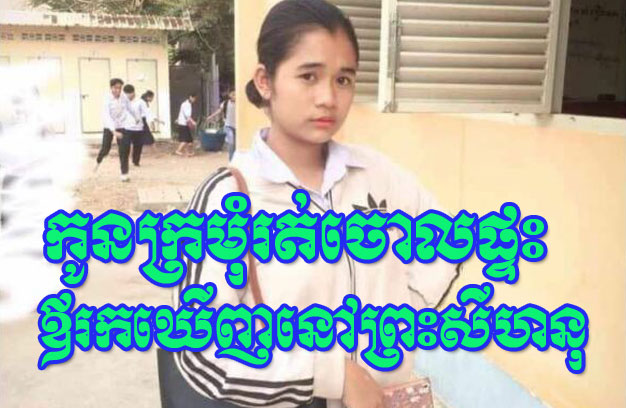 ខេត្តព្រះសីហនុ ៖ យុវតីរូបស្រស់ ជាសិស្សសាលាម្នាក់ ដែលបានបាត់ខ្លួនចេញពីផ្ទះ នៅរាជធានីភ្នំពេញ ដោយគ្មានដំណឹង តាំងពីថ្ងៃទី០៨ ខែសីហា ឆ្នាំ២០២២ ធ្វើឱ្យក្រុមគ្រួសារភ័យឆោឡោ តាមស្វែងរកសពកន្លែងនៅតែមិនឃើញ រហូតដល់ប្រកាសតាមបណ្តាសារព័ត៌មាន និងប្តឹងសមត្ថកិច្ចជួយតាមស្វែងរកនោះ ត្រូវបានសមត្ថកិច្ចខេត្តព្រះសីហនុ និងក្រុមគ្រួសារតាមរកឃើញ កាលពីវេលាម៉ោង ៧និង២០នាទីយប់ ថ្ងៃទី១៨ ខែសីហា ឆ្នាំ២០២២ នៅក្រុងព្រះសីហនុ ។