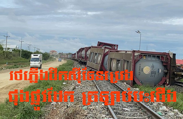 ភ្នំពេញ ៖ រថភ្លើងដឹកទំនិញ មួយខ្សែ ខណៈដែលកំពុងបើកបរ ស្រាប់តែស្រុតកំណល់ ផុងផ្លូវដែក បណ្តាលឱ្យក្រឡាប់ធ្លាក់ស៊ីទែន ប្រេងចំនួន ២ទូ បង្កឱ្យមានការភ្ញាក់ផ្អើលឡើង កាលពីវេលាម៉ោង ៧និង៤៥នាទីព្រឹក ថ្ងៃទី០៧ ខែកក្កដា ឆ្នាំ២០២២ នៅលើផ្លូវដែក ភ្នំពេញ-កំពត ចំណុចខាងកើតវត្តត្រពាំងឈូក ក្នុងភូមិចែងមែង សង្កាត់សំរោងក្រោម ខណ្ឌពោធិ៍សែនជ័យ។