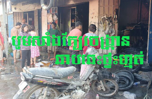 ភ្នំពេញ ៖ ផ្ទះជាងជួសជុលម៉ូតូ មួយកន្លែង ត្រូវបានអគ្គិភ័យឆាបឆេះ រងការខូចខាតធ្ងន់ ខណៈពេលដែល ម្ចាស់បូមសាំង ចេញពីប៊ីដុង ដាក់ចូលដប ទុកលក់ នៅក្បែរភ្លើងចង្ក្រានដាំបាយ បណ្តាលឲ្យឆាបឆេះ បង្កជាអគ្គិភ័យយ៉ាងសន្ធោសន្ធៅ។