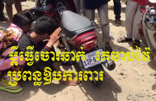 ភ្នំពេញ ៖ បុរសម្នាក់ កំពុងជិះម៉ូតូដឹកប្រពន្ធ និងកូនតូច ធ្វើដំណើរតាមផ្លូវសុខៗ ស្រាប់តែត្រូវជនសង្ស័យ ១ក្រុម មានគ្នា ៣នាក់ ជិះម៉ូតូ ៣គ្រឿង បានធ្វើសកម្មភាពតាមឆក់ខ្សែក តែមិនបានសម្រេច ទើបព្យាយាមរត់គេចខ្លួន តែសំណាងមិនល្អ ជនសង្ស័យម្នាក់ បានជិះជ្រុលទៅបុកម៉ូតូអ្នកដំណើរ បណ្តាលឱ្យដួល និងត្រូវបានប្រជាពលរដ្ឋក្របួចជាប់ ផ្ទុះកំហឹង ព្រួតវាយយ៉ាងចាស់ដៃ ហើយក្រោយមក លេខមុខស្ត្រីម្នាក់ អះអាងថា ត្រូវជាប្រពន្ធរបស់ជនសង្ស័យ បានស្ទុះចូលមកឱបប្តី និងយំសំពះអង្វរកុំឱ្យវាយដំប្តីរបស់នាងទៀត។